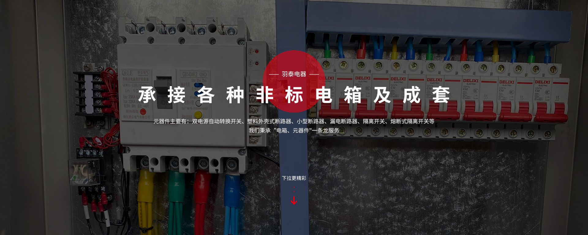 本公司坐落于人杰地靈,“中國制造之都“浙江省臺州市-黃巖。專注工業(yè)電氣領域,是一家集科研、生產(chǎn)、銷售為一體的較全方面型電氣企業(yè)。主要生產(chǎn):低壓成套配電箱、配電柜、電表箱、動力箱、照明箱、工地臨時箱、設備控制箱,以及各種元器件。元器件主要有:雙電源自動轉(zhuǎn)換開關(guān)、塑料外殼式斷路器、小型斷路器、漏電斷路器;隔離開關(guān)、熔斷式隔離開關(guān)等,公司產(chǎn)品嚴格按照國家CQC,CCC標準執(zhí)行,滿足于家庭與工業(yè)要求。我們秉承“電箱、元器件"一條龍服務。
